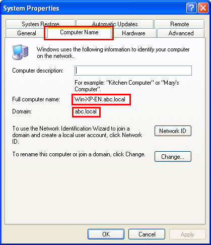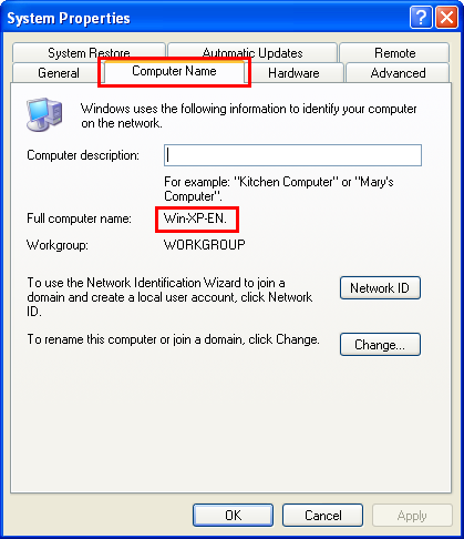 Click the [Computer Name] tab, and check [Full computer name].