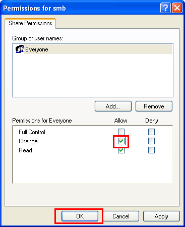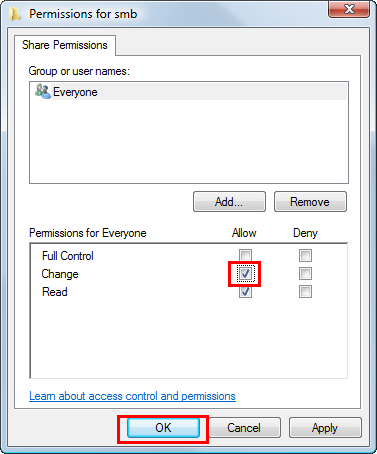 Select the check box to permit [Change], then click [OK].