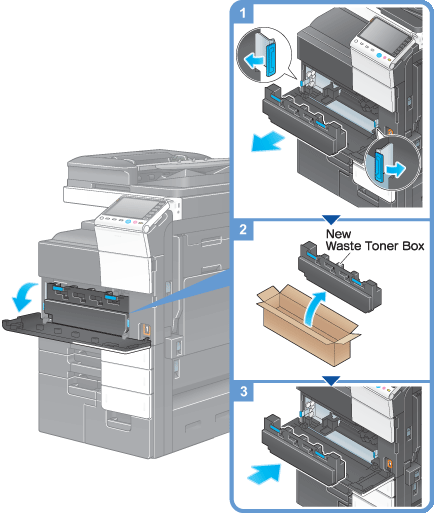 Your service representative will recover your used Waste Toner Box. Place a cap on it and store it in a box.