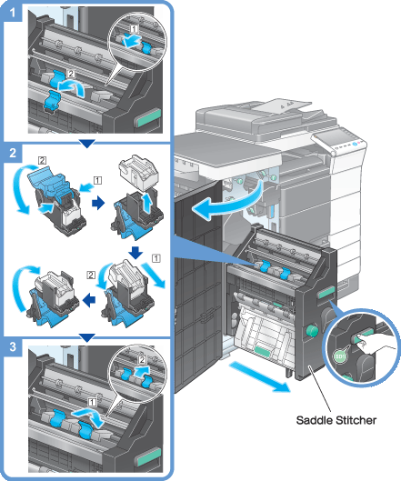 Be sure to replace the Staple Cartridge after the relevant message has appeared. If a Staple Cartridge is removed before the relevant message appears, it may result in a failure.