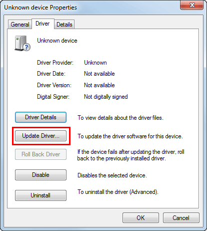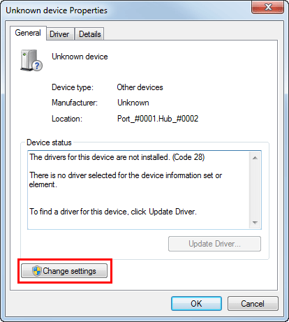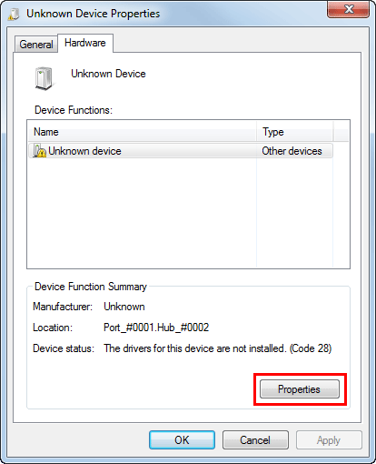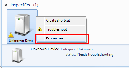 Right-click the device name or [Unknown Device] of the authentication unit displayed in the [Unspecified] category, then click [Properties].