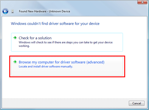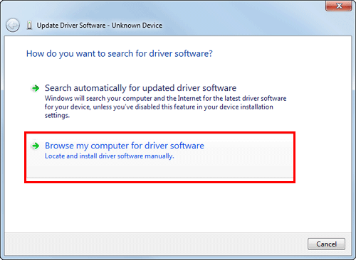 In the screen in which to select how to search the driver software, click [Browse my computer for driver software].