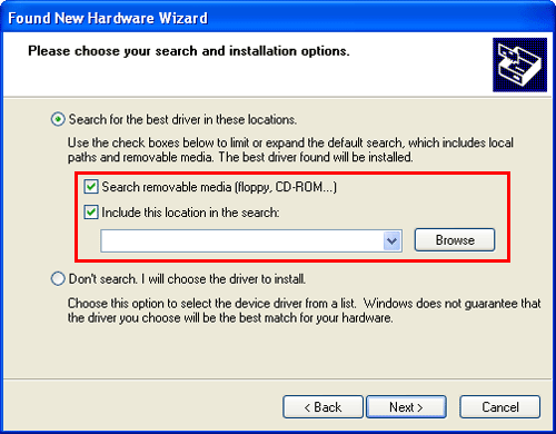 Under [Search for the best driver in these locations.], select [Include this location in the search:], then click [Browse].