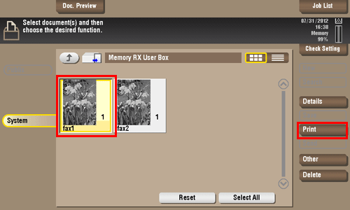 The fax is printed and automatically deleted from the Memory RX User Box.