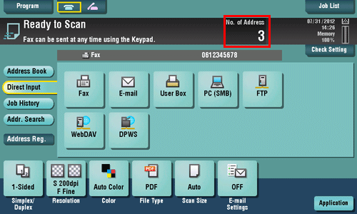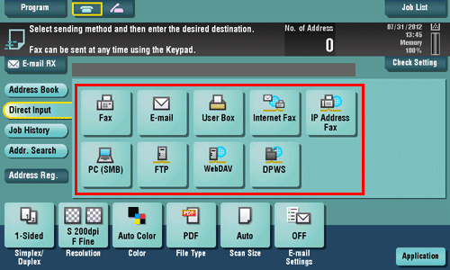 Tap [Scan/Fax] and select an destination type from [Direct Input].