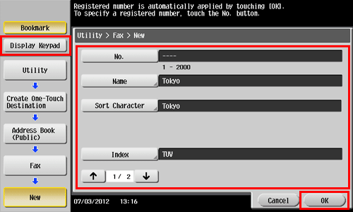 Select [Create One-Touch Destination] - [Address Book (Public)] - [Fax].