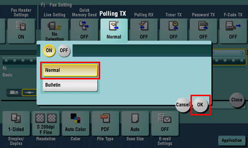 To enable fax transmission to the Confidential User Box, a Confidential User Box and communications password must be set on the recipient machine.