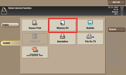 Select [Fax Settings] - [Function Settings] - [Memory RX Setting].