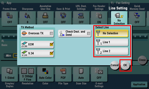Q13. We are using two fax lines. Can I select a line when transmitting a fax?