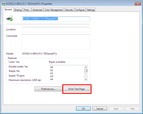 If test printing has failed, click [Troubleshoot] to find out how to solve the problem.