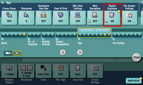 If you cannot change the [ON] or [OFF] state, it is assumed that whether or not a digital signature is always added is specified by the administrator.