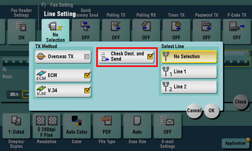 Select [Check Dest. and Send], then tap [OK].