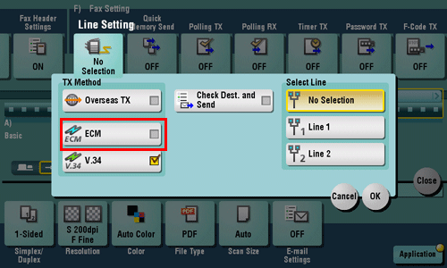Fax machines that support the ECM communicate while confirming that there is no error in the sent data. This prevents image blurring caused by noise on the phone line.