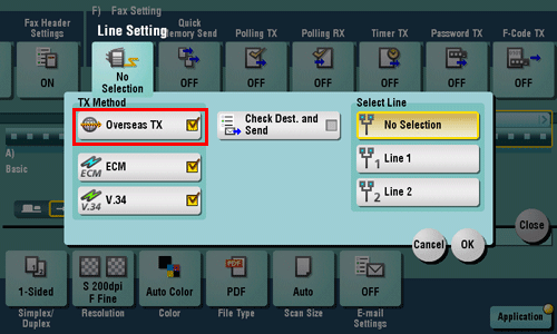 The Overseas TX Mode function reduces the transmission speed (the information transfer speed) for sending a fax.