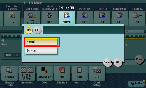 Tap [Application] - [Fax Setting] - [Polling TX], then tap [ON].
