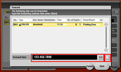 Select a job to be forwarded, specify the forwarding destination and then tap [OK].