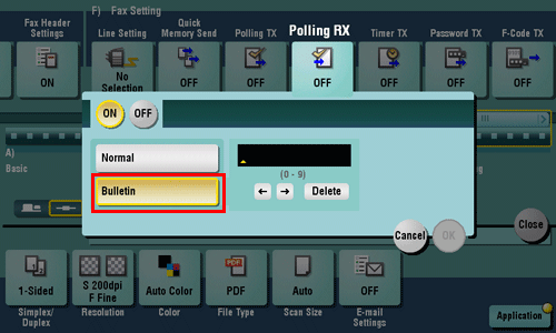 Optionally, you can use the Polling TX function to register files for polling with a Bulletin User Box of this machine. For details on the Polling TX function, refer to Here.