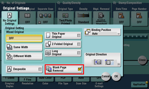 Select this check box when scanning an original that contains blank pages. Any blank pages that are detected are not counted as original pages.