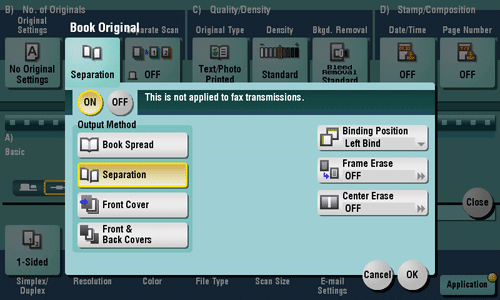 [ON]/[OFF] | Select [ON] to specify Book Original. |
