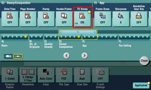 When scanning originals using ADF, a TX Stamp is printed on a scanned original to certify that the original has been scanned. It is used when sending a fax.