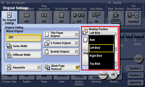 [Left Bind] | Select this option when the binding position is set to the left of the original. |