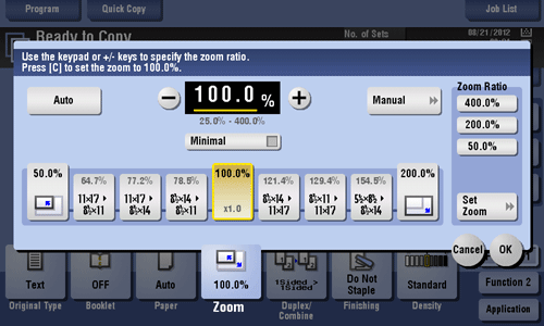 Select a preset zoom when copying from a standard size original onto a standard size sheet of paper.