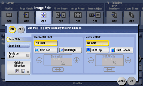 You can fine tune the image position by shifting it in a horizontal or vertical direction according to the paper size. When an image is printed on the back side, you can also fine tune its position.