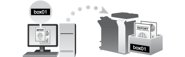 Since you need to be authenticated in this machine to print the data saved in the box, this function is suitable for safely printing highly confidential documents. When you are successfully authenticated, the print data of the login user is automatically printed. This enhances security as well as ensures smooth operation.
