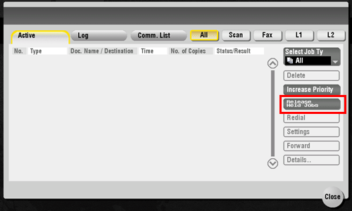 Because you can check the print result before starting printing the remaining copies from the Touch Panel, this function is helpful to prevent a lot of misprints.