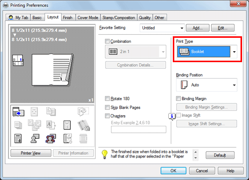 By using this function in combination with the 2-Sided Print function ([Print Type]: [2-Sided]), you can save more amount of paper.
