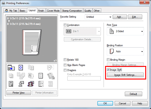 You can fine tune the print position of the image upward, downward, rightward, and leftward with respect to the paper. When an image is printed on both side, you can also fine tune its position.