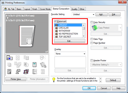 On the [Stamp/Composition] tab, select the [Copy Security] check box, and then select [Copy Protect].
