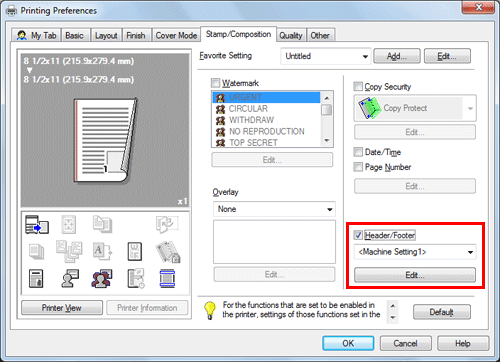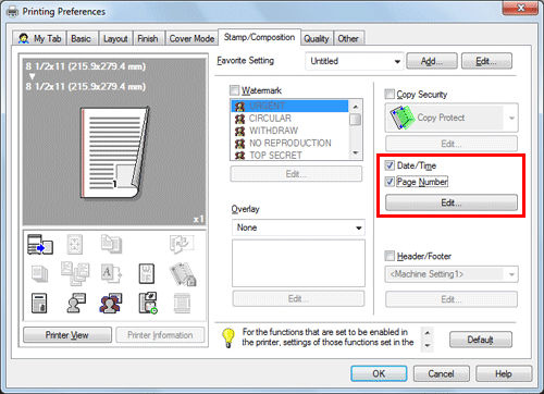 On the [Stamp/Composition] tab, select the [Copy Security] check box, and then select [Stamp Repeat].