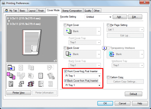 In the [Cover Mode] tab, select the [Carbon Copy] check box.