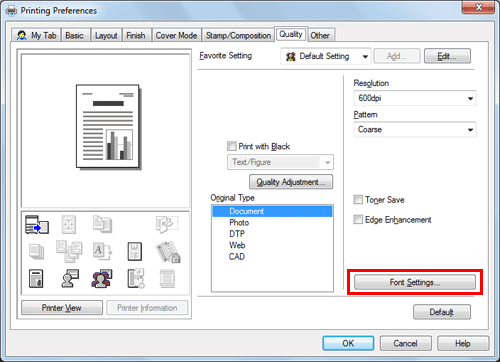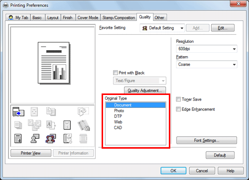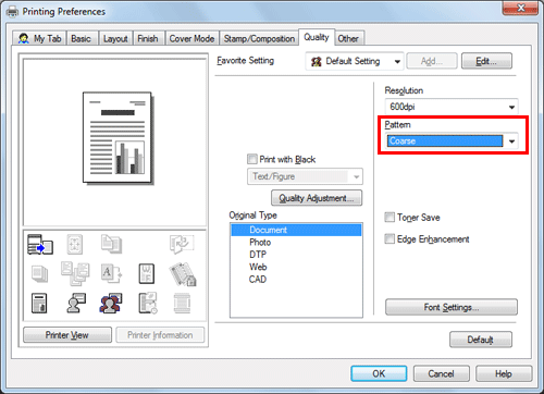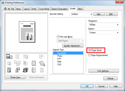 When you print a large number of copies, use of the Proof Print function will prevent a large number of misprints being created, thereby reducing the amount of waste paper generated. For details, refer to Here.