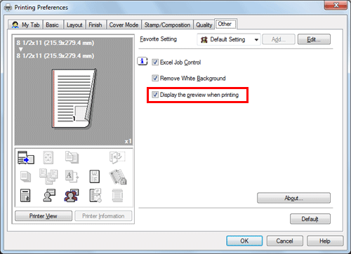In the [Other] tab, select the [Display the preview when printing] check box.