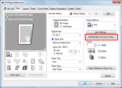 When printing a document in an environment where user authentication or account track is employed, you need to send the authentication information (user name and password) to this machine to execute printing. This requirement limits the users who can use this machine, preventing unauthorized use by a third party.