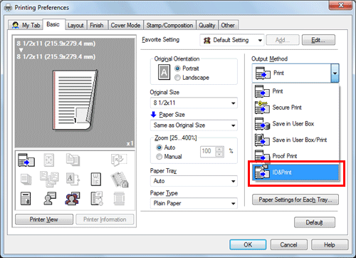 In [Output Method] in the [Basic] tab, select [Proof Print].