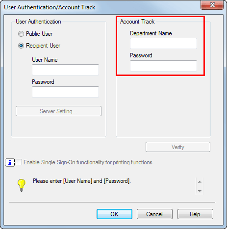 If your computer can communicate with this machine, clicking [Verify] executes authentication based on the authentication information that has been input. You can check the authentication information for errors before starting printing.