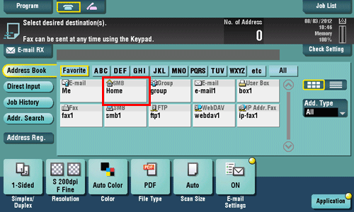If you log in to this machine while user authentication is installed on this machine and Active Directory is used as an authentication server, the [Home] key appears in the [Address Book] screen.