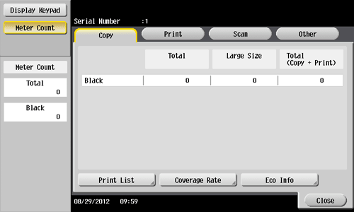 Checking the usage of this machine based on the number of printed sheets (counter)