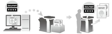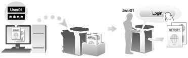 ID & Print is a function that saves print data to the ID & Print User Box of this machine when user authentication is installed. This function does not print data immediately, thereby preventing printed materials from being missing or left. You need to perform user authentication on this machine to print the data saved in the User Box. Therefore, this function is suitable for safely printing highly confidential documents. When authentication succeeds, the print data of the login user is automatically printed. This enhances security as well as ensures smooth operation.