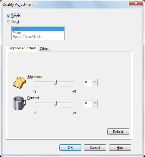 You can adjust the overall image quality of the original, and you can also adjust in detail the image quality of each element of the original, such as text and photos. When you are using the PCL driver, you can adjust the brightness and contrast.