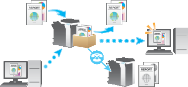 If the frequently used original data is stored in the User Box, you do not need to search for the document or data when they are being printed or sent. Because you do not need to operate the printer from a PC, you can reduce operation time and improve the efficiency with which you carry out tasks.