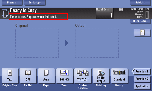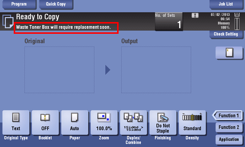 Users will be informed of the time to replace a Toner Cartridge or Waste Toner Box via a message displayed on the screen.