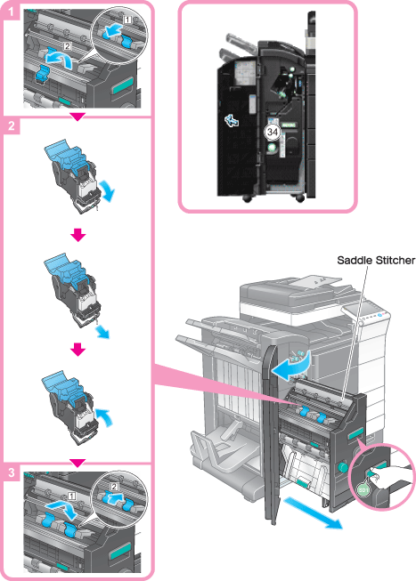 The figure above shows the optional Finisher FS-534 equipped with Saddle Stitcher SD-511 and Punch Kit PK-520.