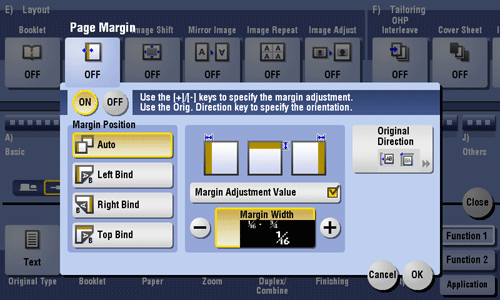 [ON]/[OFF] | Select [ON] to set a page margin. |