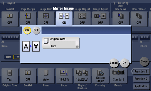 [ON]/[OFF] | Select [ON] to specify Mirror Image. |