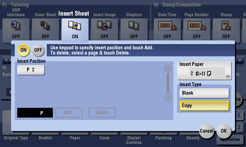 [Insert Type] | Select whether or not to copy on the insertion paper. |