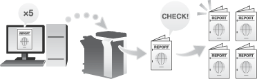 When you print a large number of copies, use of the Proof Print function will prevent a large number of misprints being created, thereby reducing the amount of waste paper generated. For details, refer to Here.